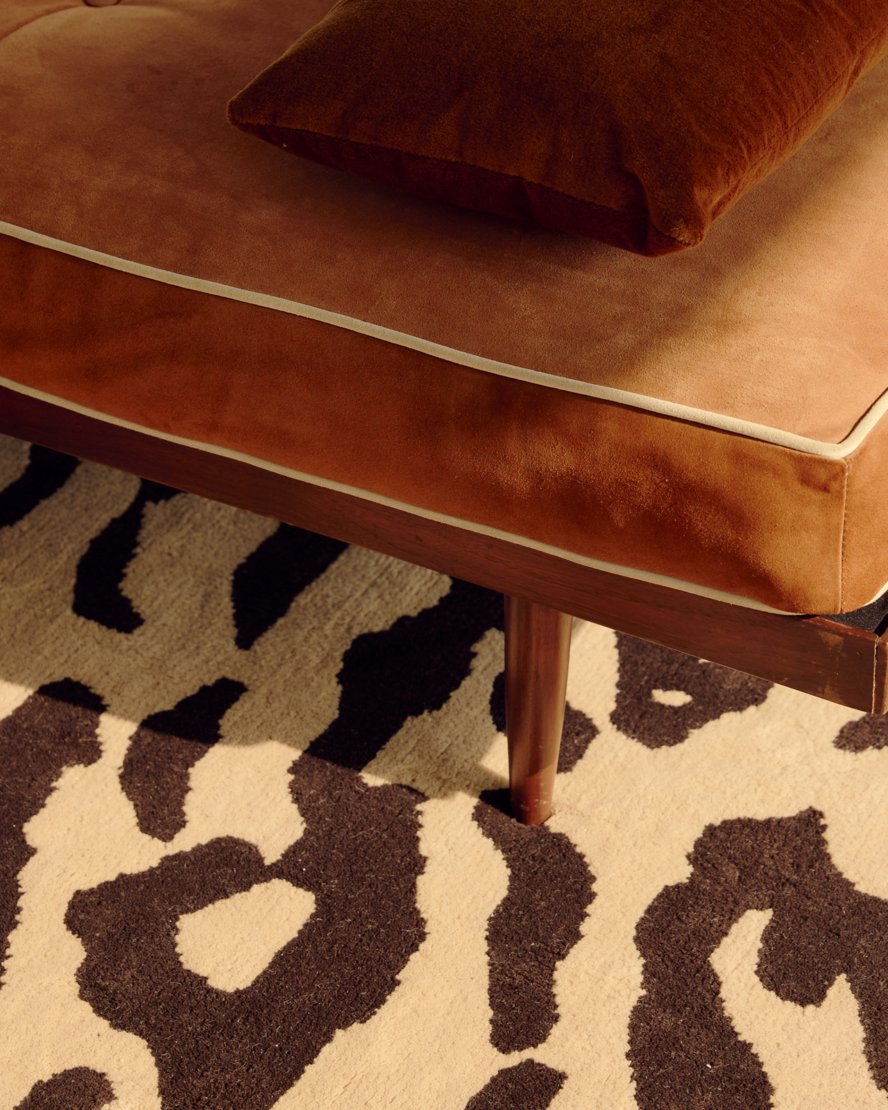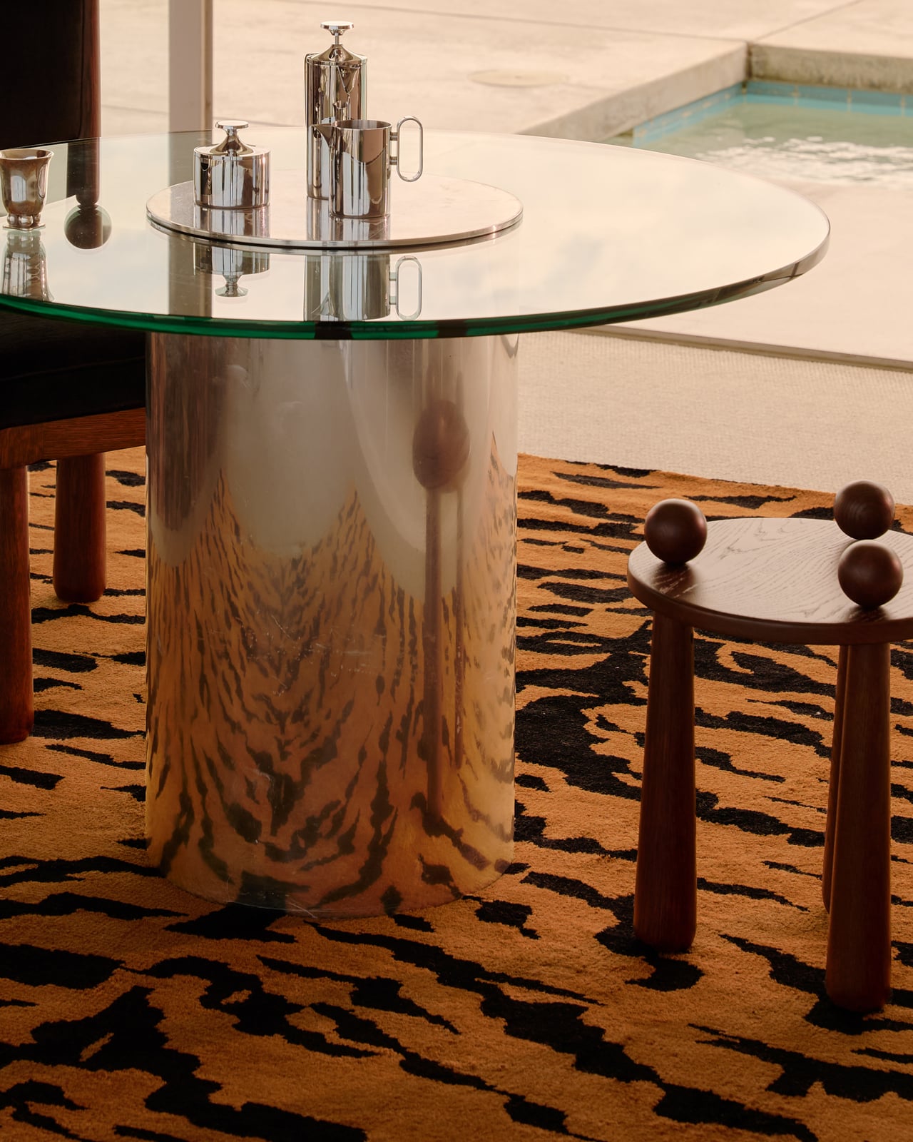 Le modernisme du milieu du siècle revisité à travers un prisme contemporain. Une interprétation audacieuse des imprimés animaliers intemporels, des formes géométriques et des teintes profondes. Conçue pour Tase Gallery et photographiée dans la célèbre Stahl House à Los Angeles. Avec la participation de Jessie Andrews.