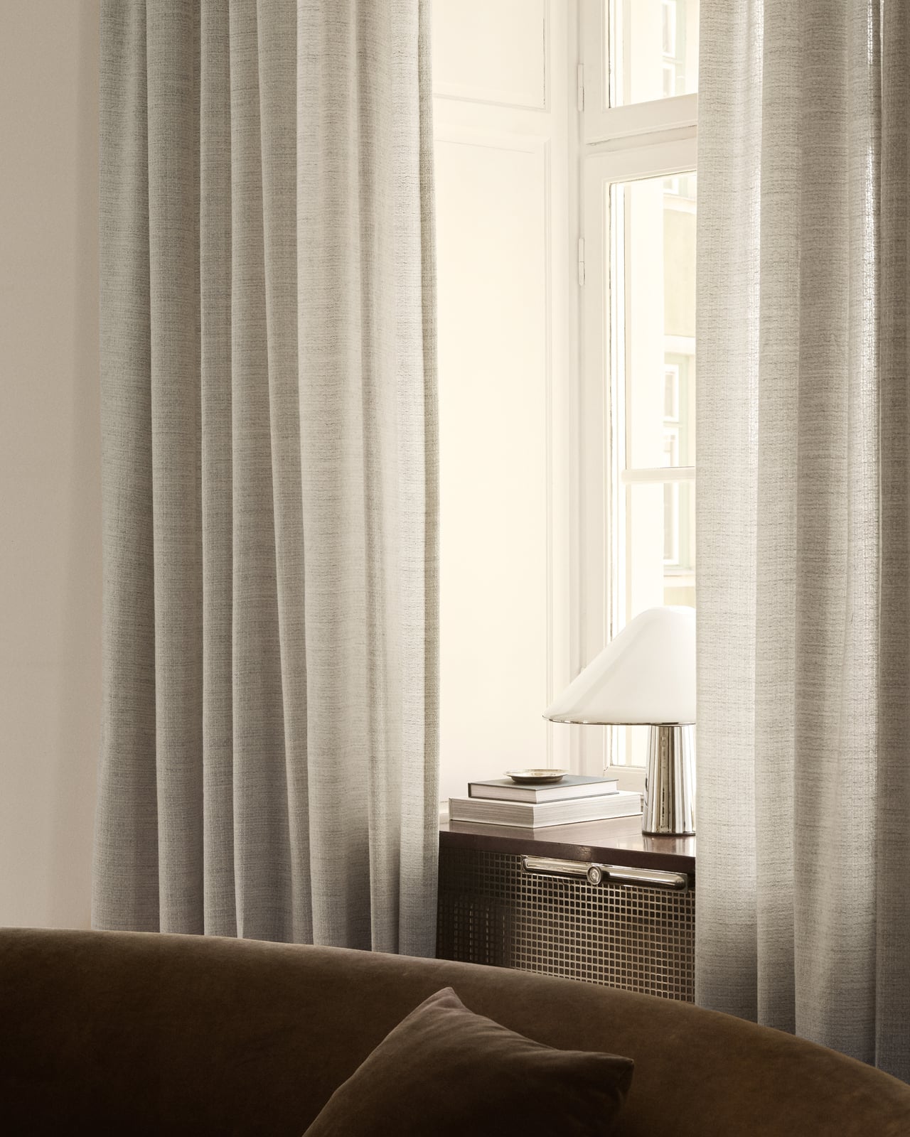 Un luxueux rideau en laine filtrant la lumière. Tissé avec le toucher le plus doux.