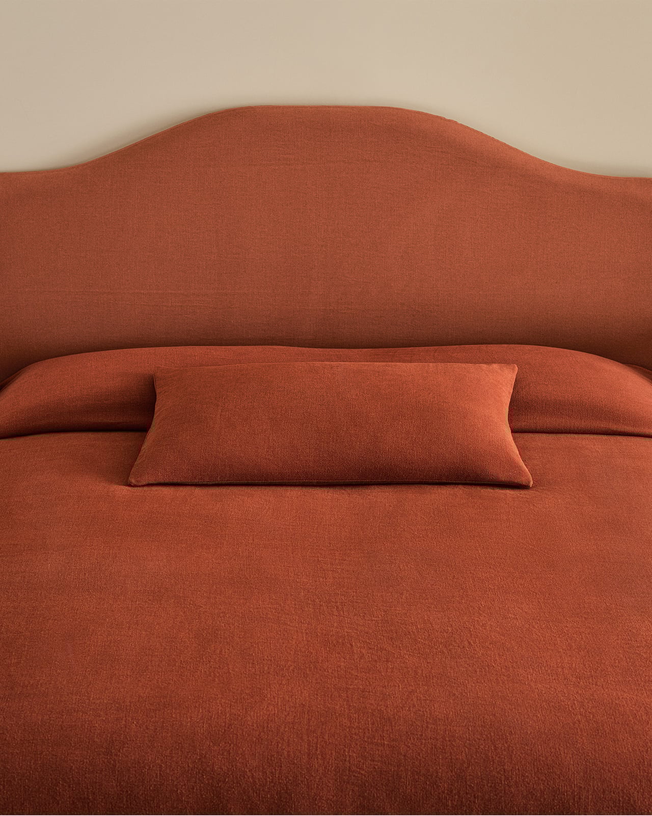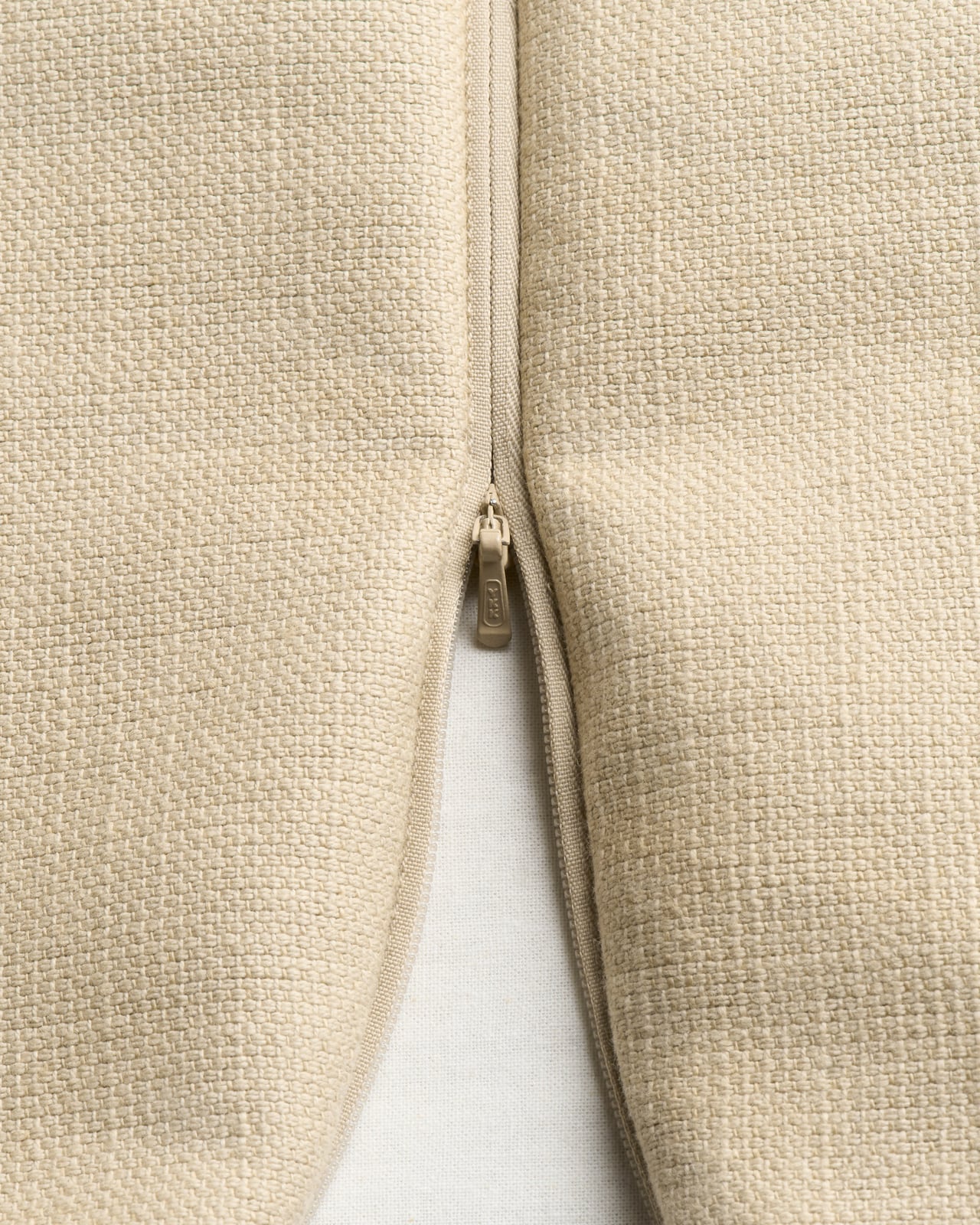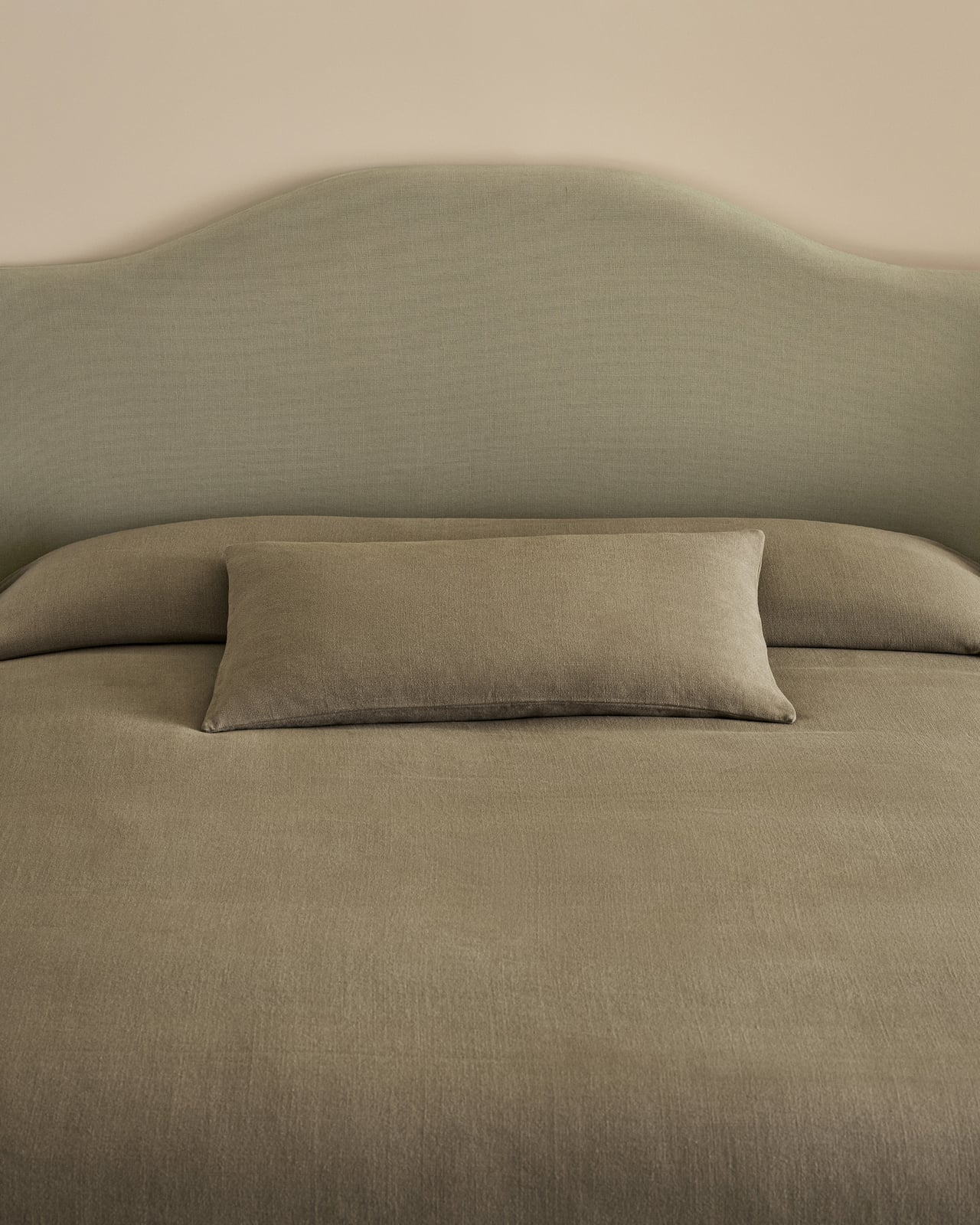 La housse amovible est réalisée en coton et lin, dans un tissage uni classique. Pure et respirante, avec un toucher lisse.