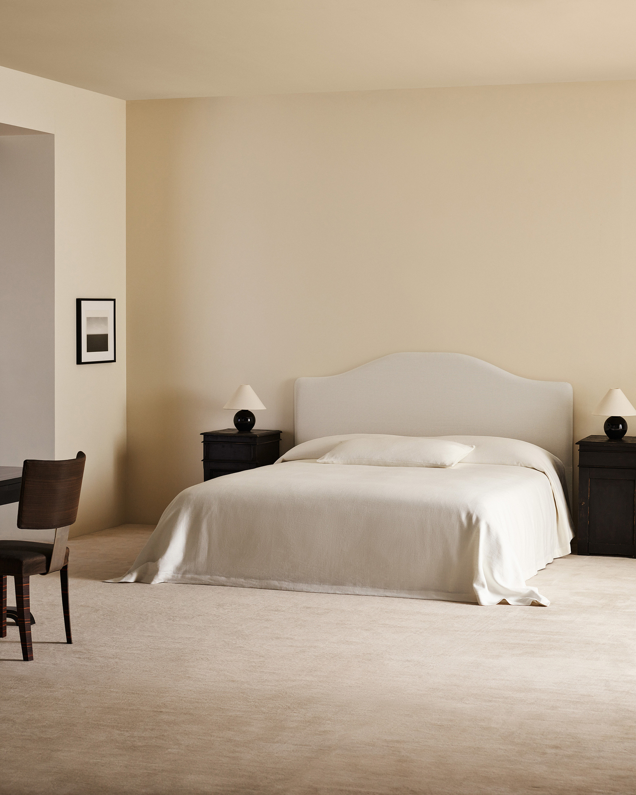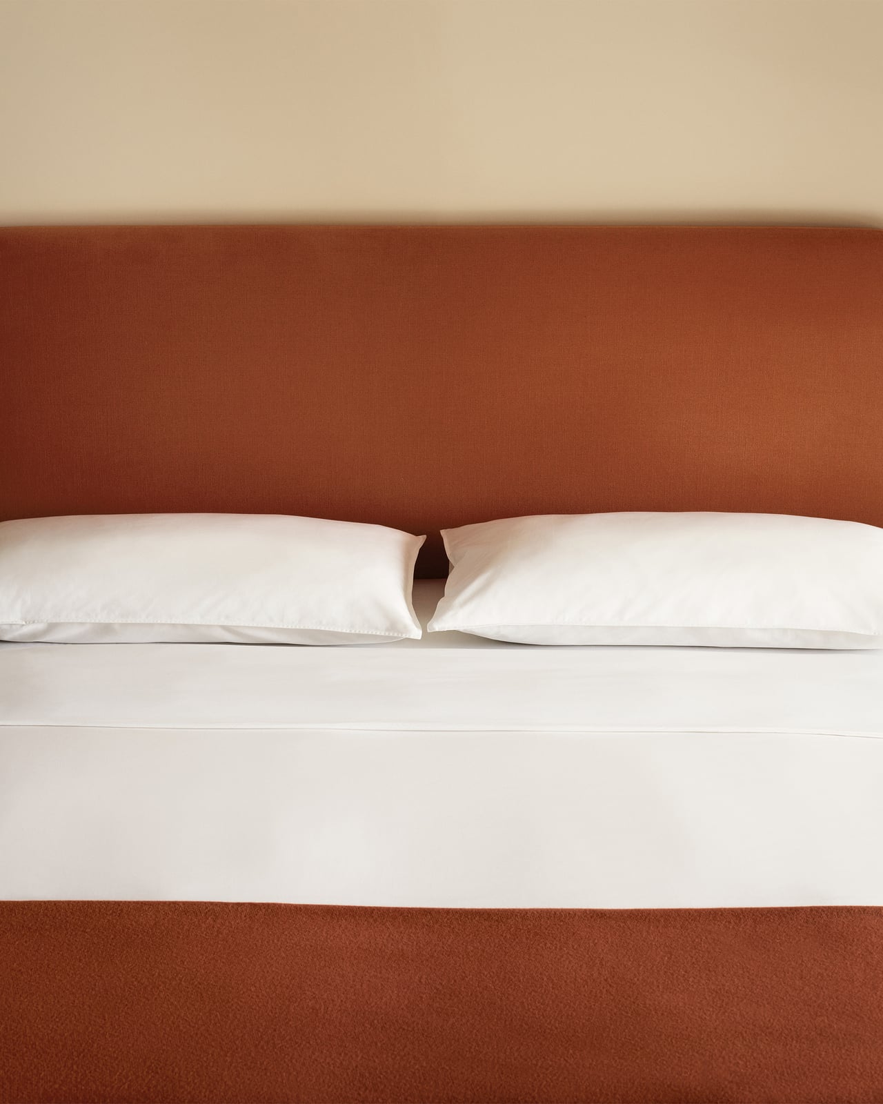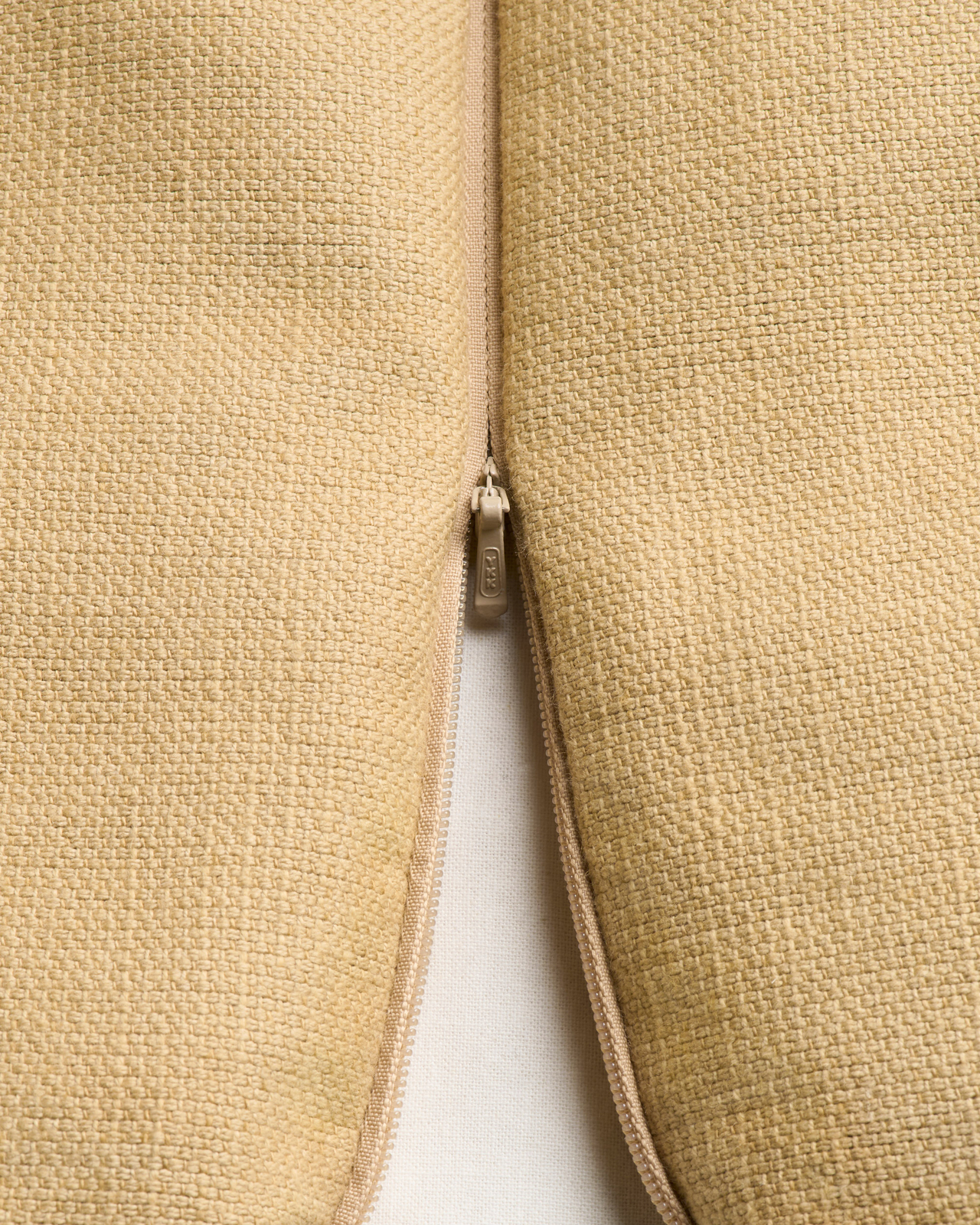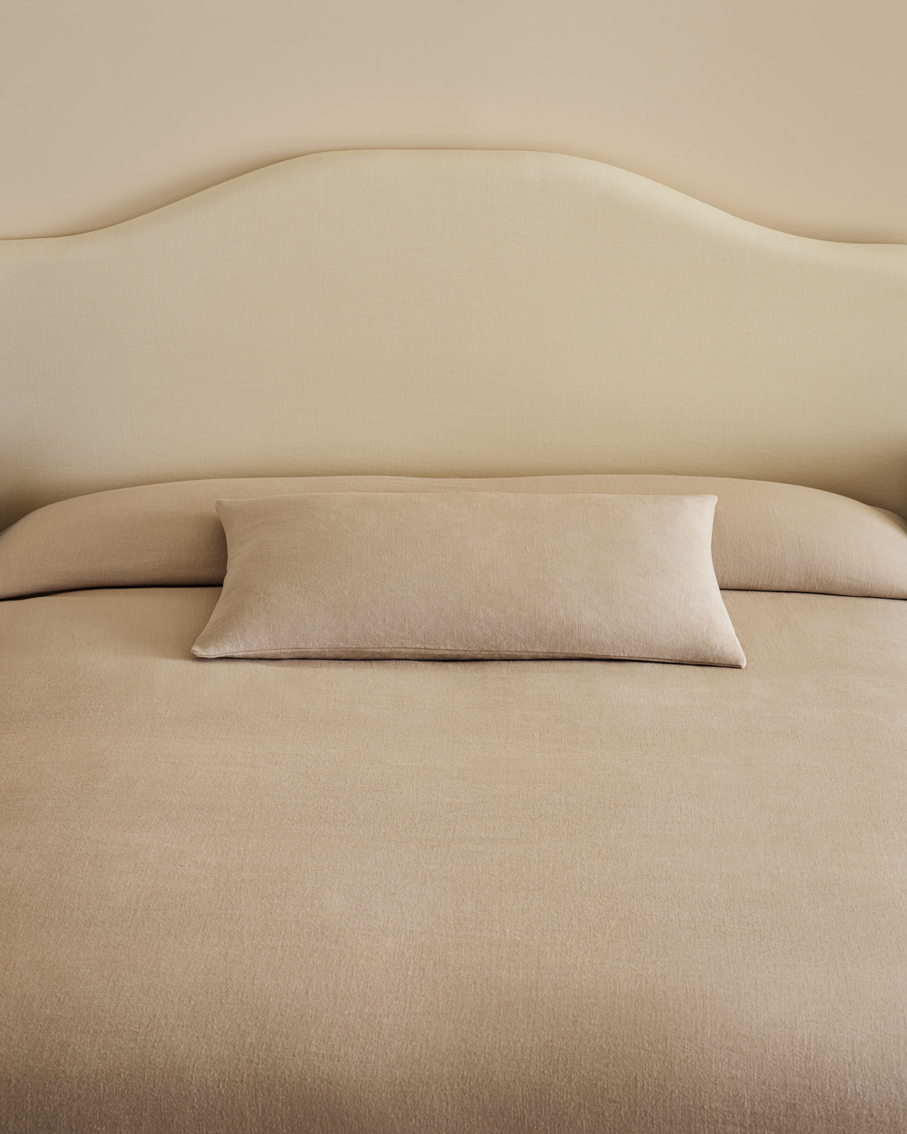 La housse amovible est réalisée en coton et lin, dans un tissage uni classique. Pure et respirante, avec un toucher lisse.