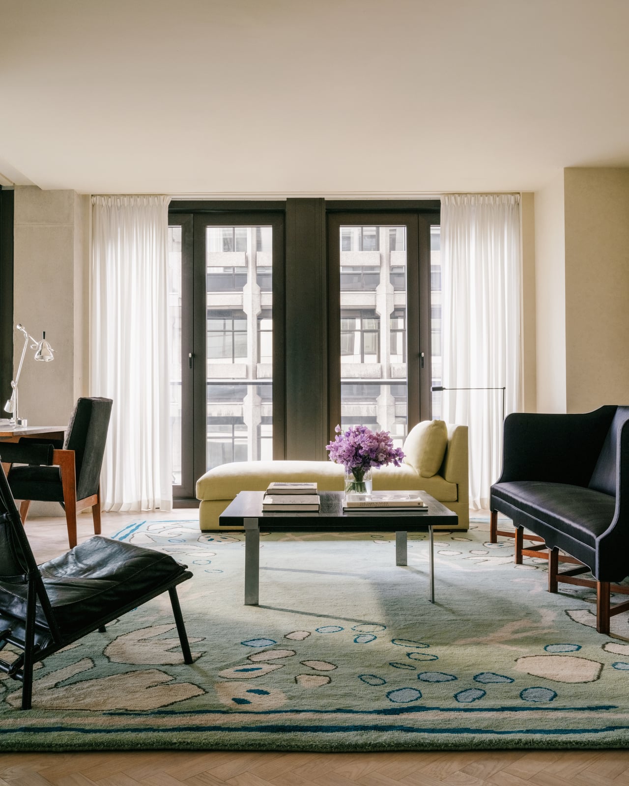 – Entrée et couloirs : Dans les zones passantes, les tapis en laine épaisse offrent une sensation d’accueil et une touche raffinée dès l’entrée.